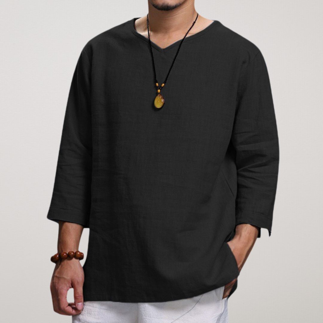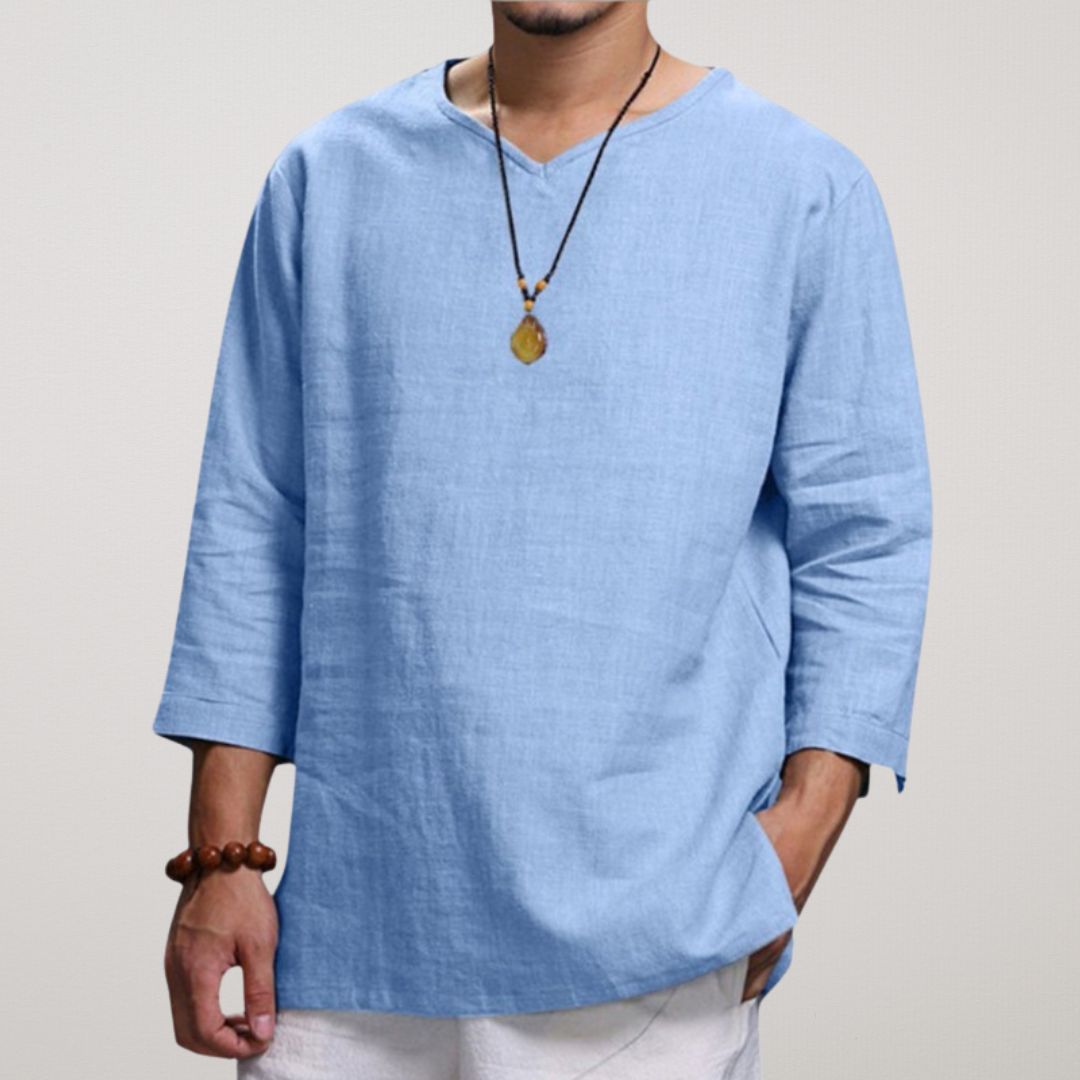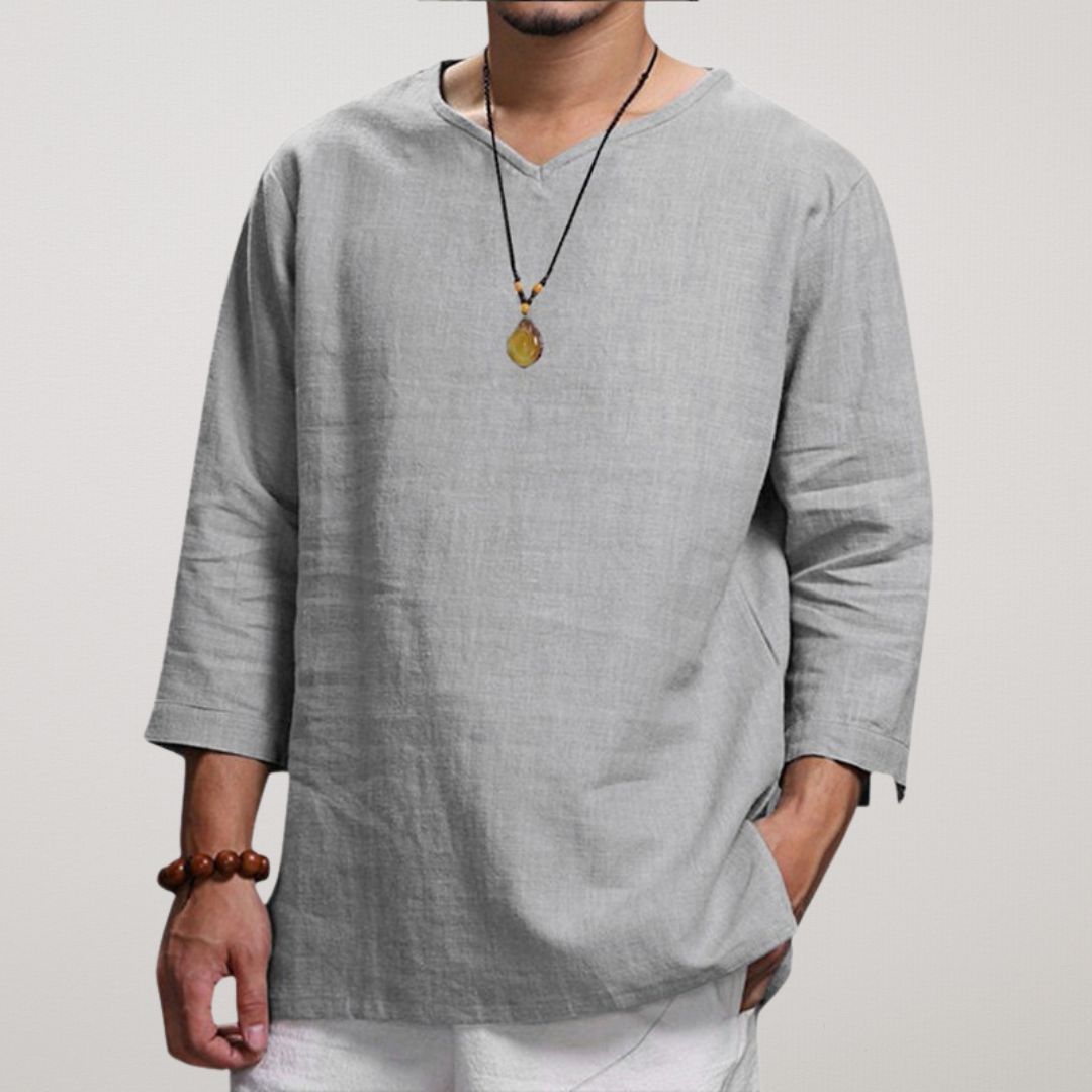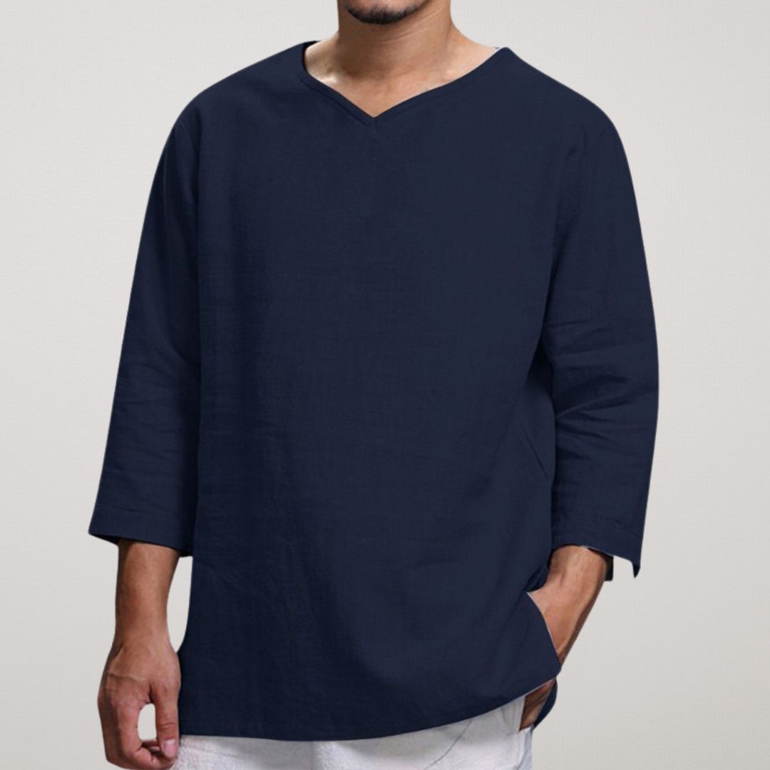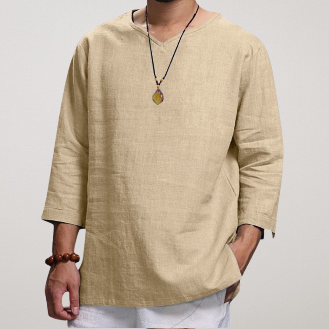 Jää jahedaks ja stiilseks selle kerge linase V-kaelusega särgiga , mis on disainitud ülima mugavuse ja hingavuse tagamiseks. Oma lõdva lõike, 3/4 varrukate ja ajatu minimalistliku disainiga sobib see ideaalselt vabaaja väljasõitudeks, rannapäevadeks või pingevabadeks koosviibimisteks. Tõsta oma igapäevast välimust selle mitmekülgse garderoobitarvikuga kõrgemale!