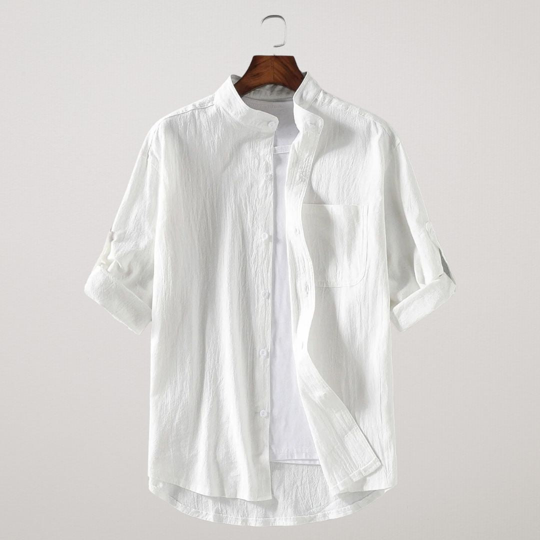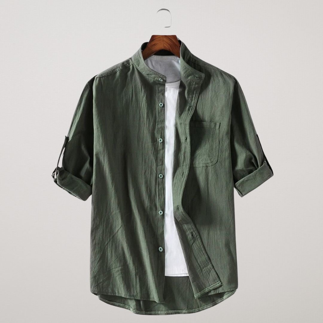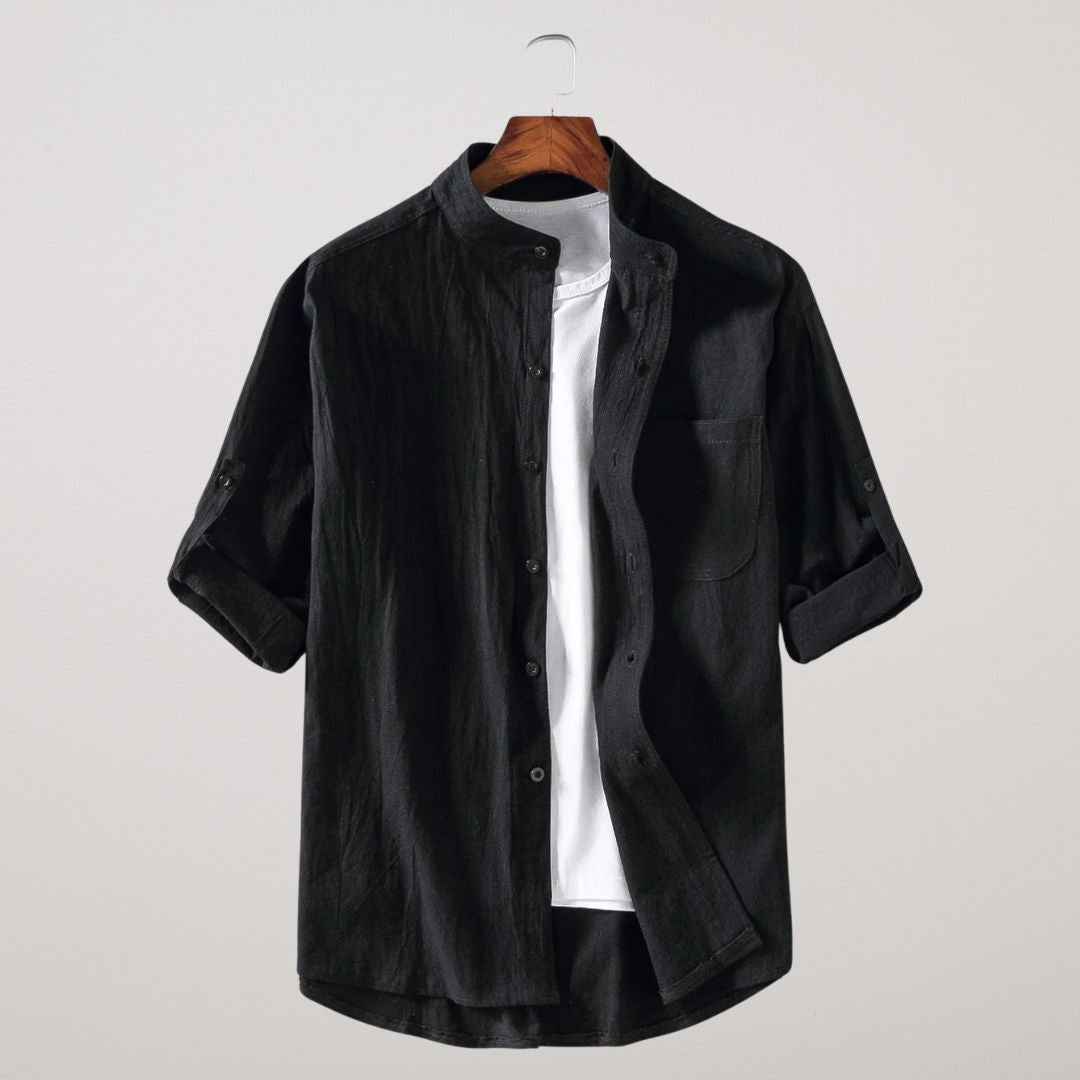 Rafineeritud, kuid samas pingevaba – see kerge puuvillane nööpidega särk on loodud ajatu elegantsi tagamiseks. Moodsa mandariinikrae, peene tekstuuriga viimistluse ja üleskääritavate varrukatega on see ideaalne stiili ja mugavuse segu. Olenemata sellest, kas oled riietatud pidulikult või argiselt, tagab see mitmekülgne rõivas, et sa alati silma paistad.