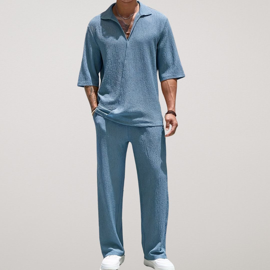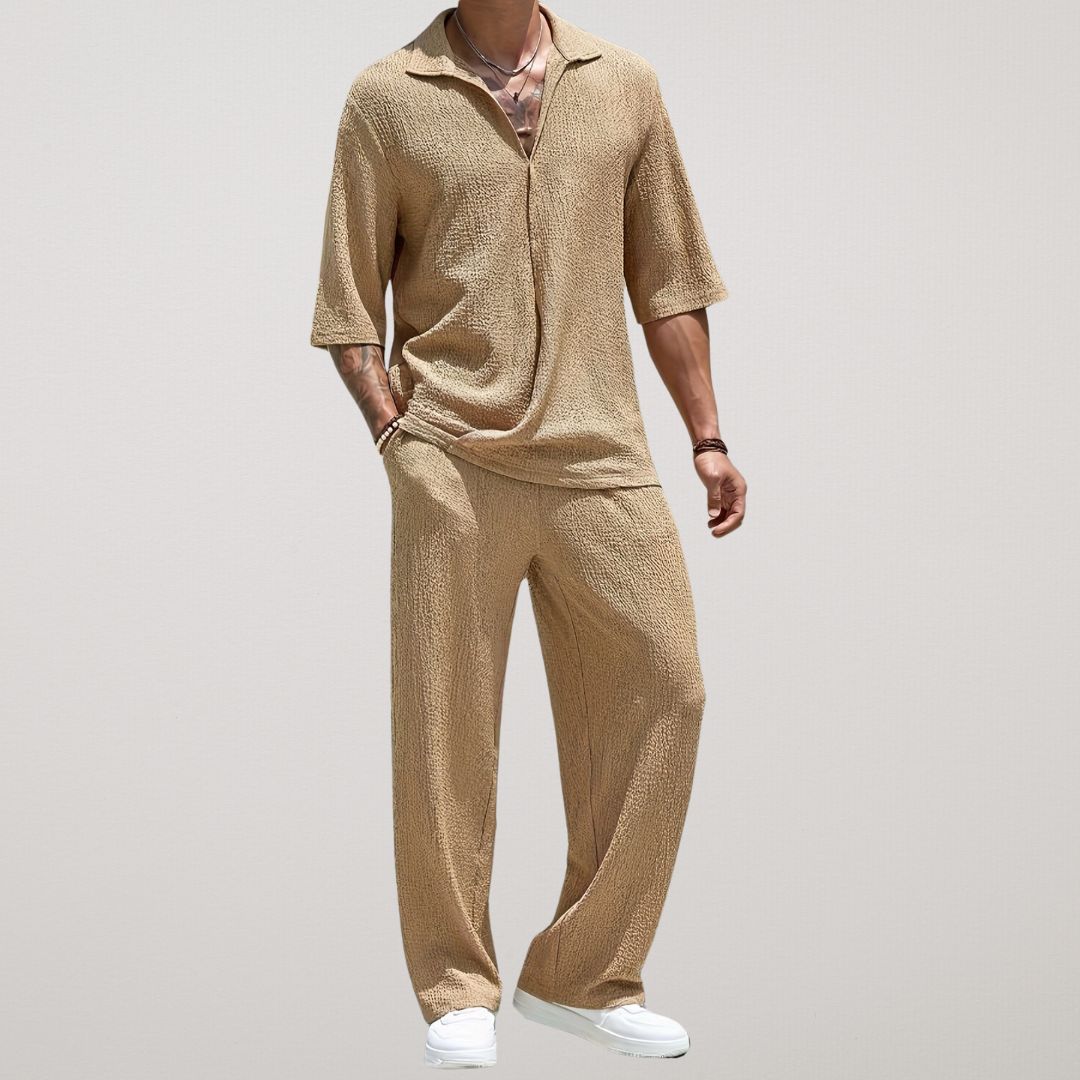 Täienda oma suvist garderoobi Breeze Luxe kaheosalise komplektiga – see on stiili ja lõõgastuse ideaalne segu. Hingavast ja tekstuursest kangast valmistatud komplekt hoiab sind jahedana, tagades samal ajal šiki ja moodsa välimuse. Olenemata sellest, kas jalutad rannas või naudid vaba päeva väljas, see kohustuslik komplekt garanteerib pingutuseta elegantsi.