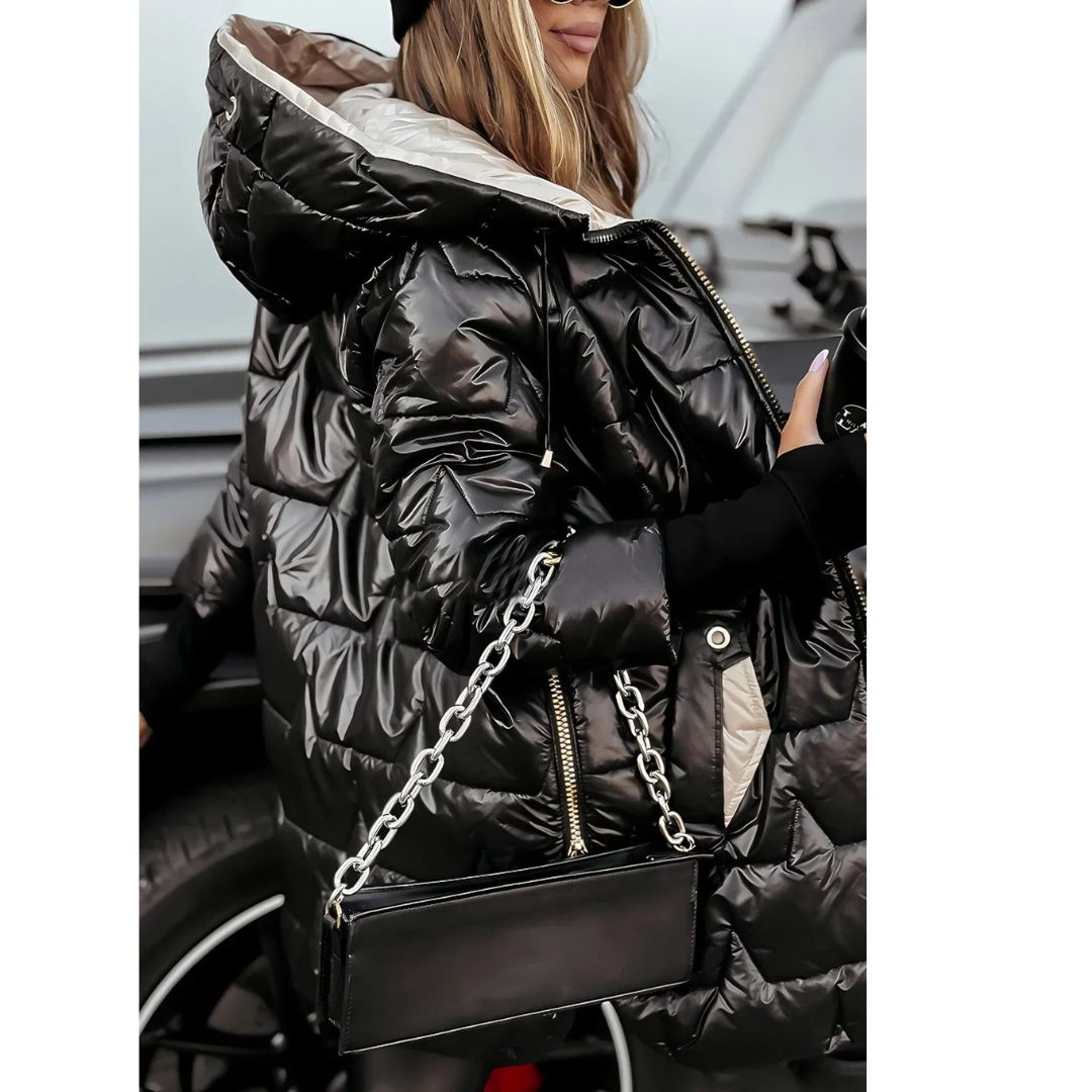 FrostShield mantel ühendab soojuse, stiili ja luksusliku läikiva viimistluse ühes ajatus disainis. Selle keskmise pikkusega lõige ja pehme polster pakuvad erakordset mugavust külmadel päevadel. Ideaalne igapäevaseks kandmiseks ja talvise välimuse vaevata täiustamiseks.